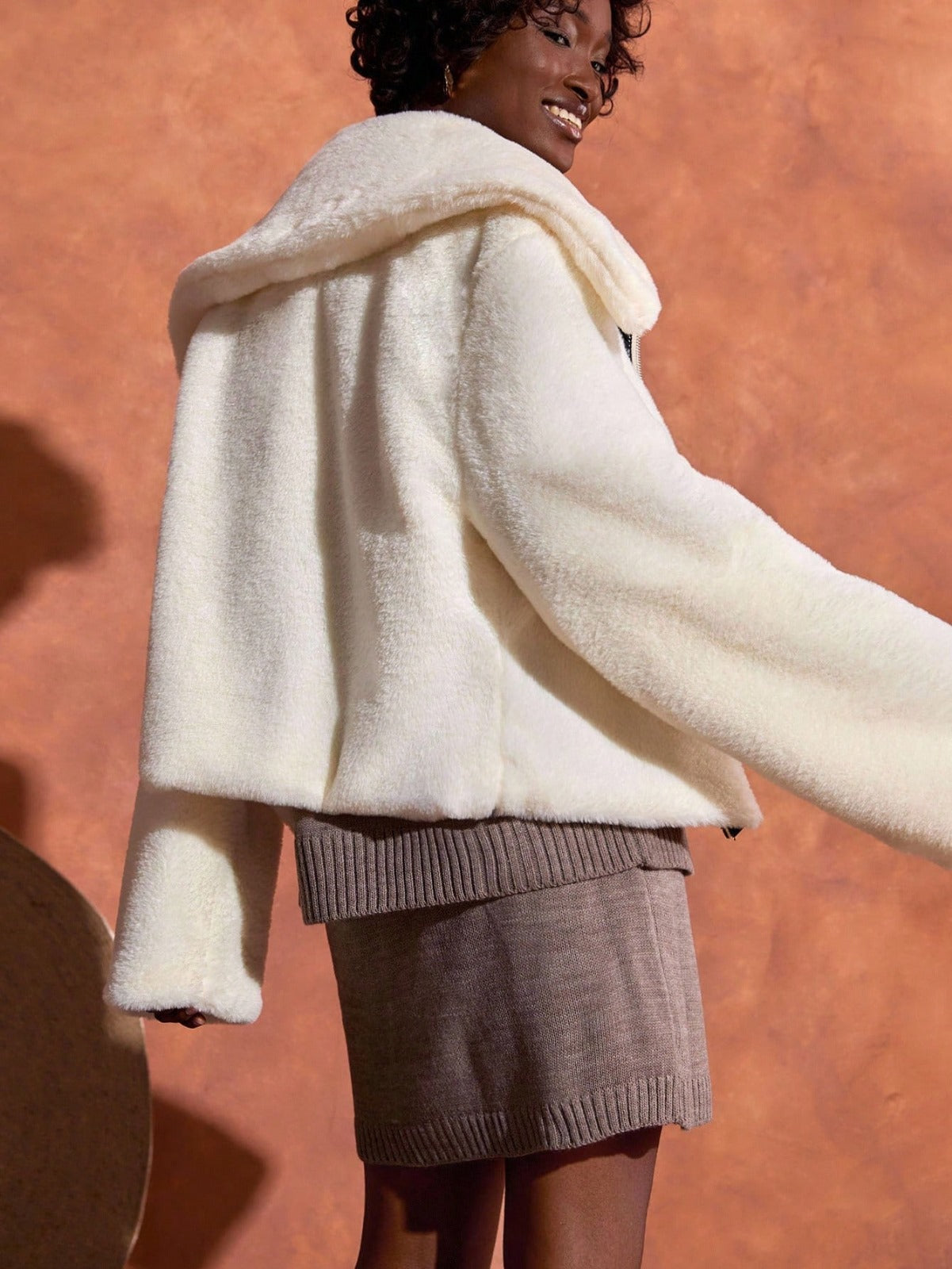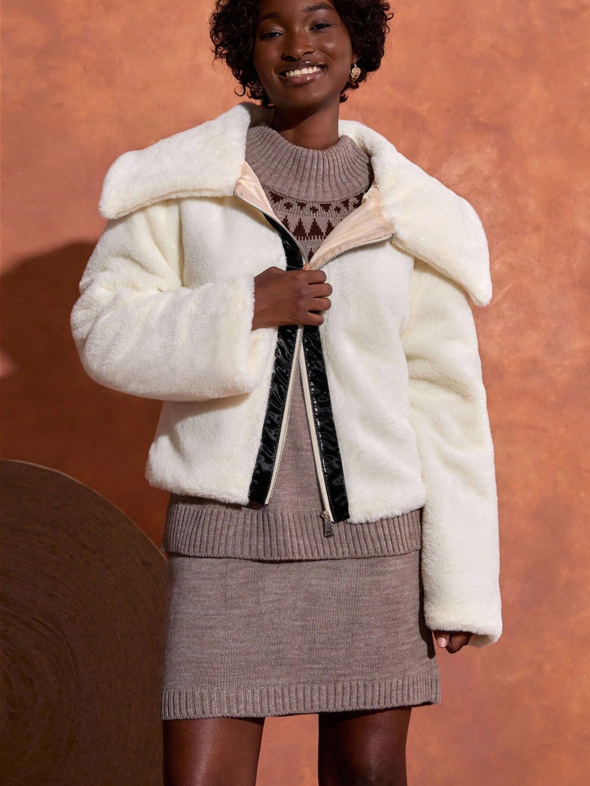 Yumuşacık peluş dokusu ve geniş yakasıyla hem sıcak tutan hem de şık görünen krem ceket. Kontrast fermuar detayları modern bir hava katar; rahat kalıbı sayesinde kazak ve elbiselerin üzerine kolayca katmanlanır. Günlük şehir stilinden hafta sonu kombinlerine kadar her an uyumlu.