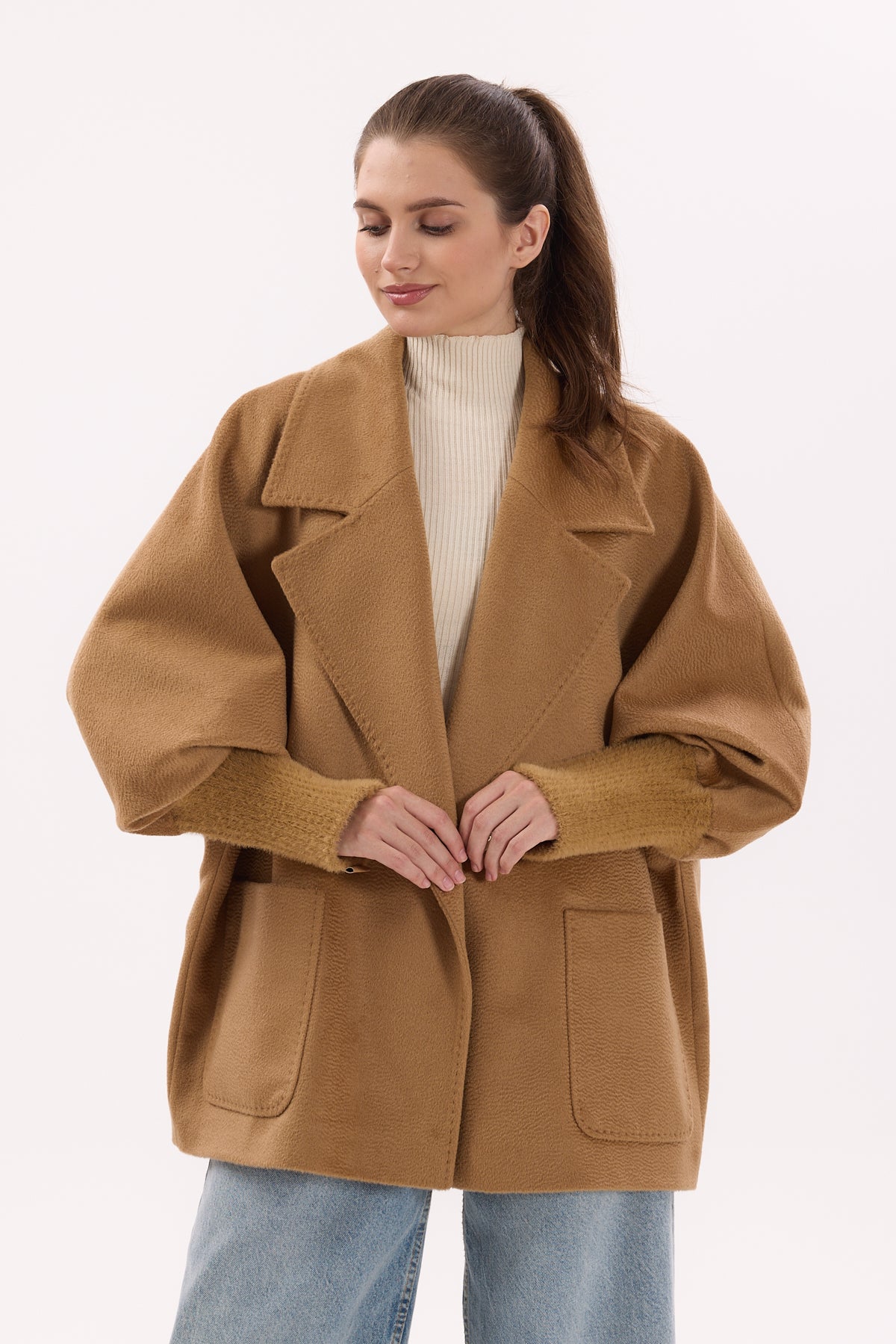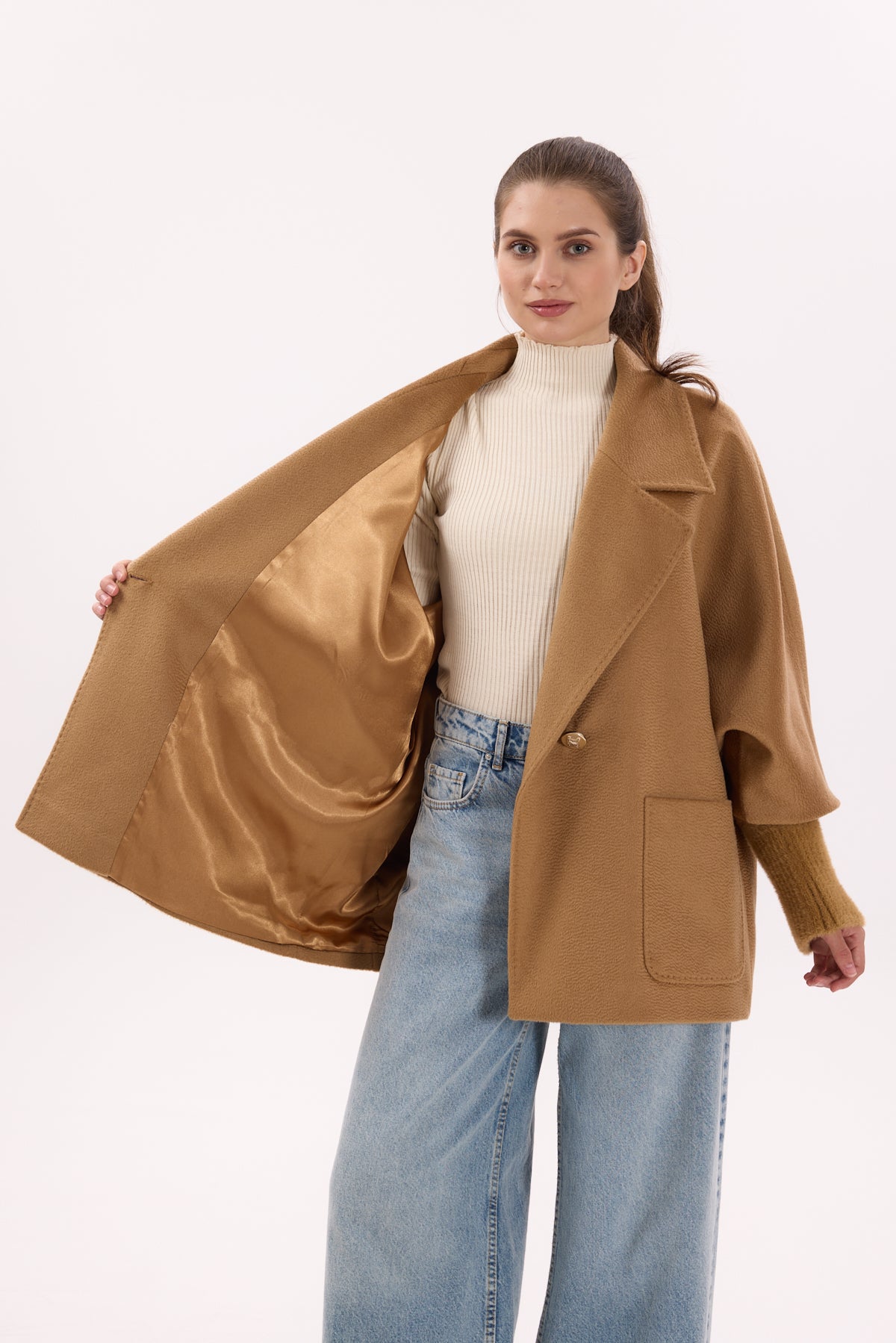 "Siena" Kamel Oversize Kaban – Triko Kol Detaylı