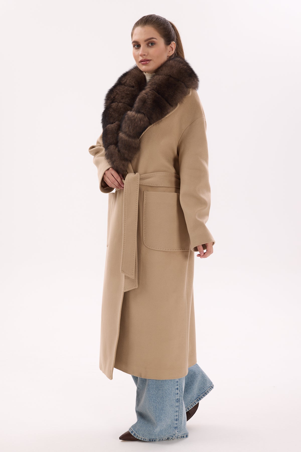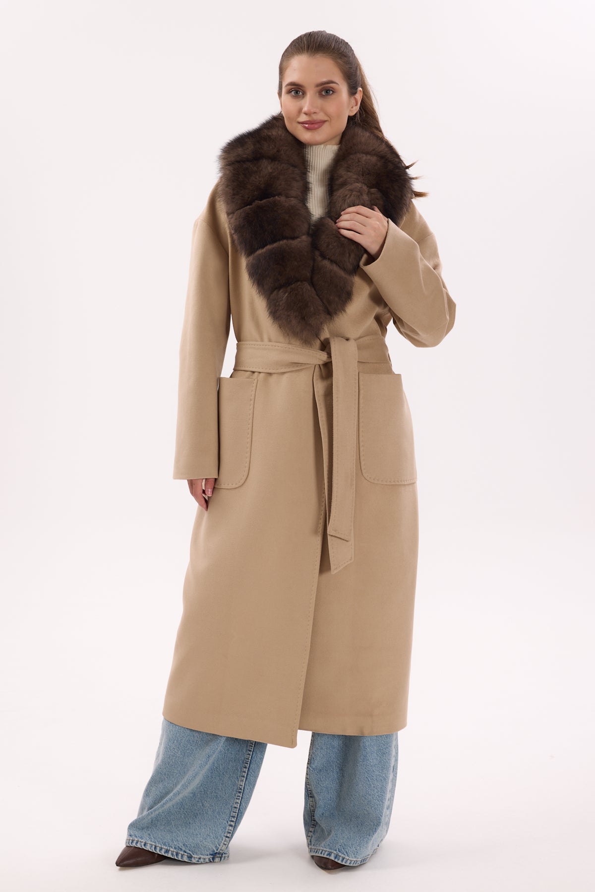 "Cambridge" Kamel Kürk Yaka Kaban – Kuşaklı