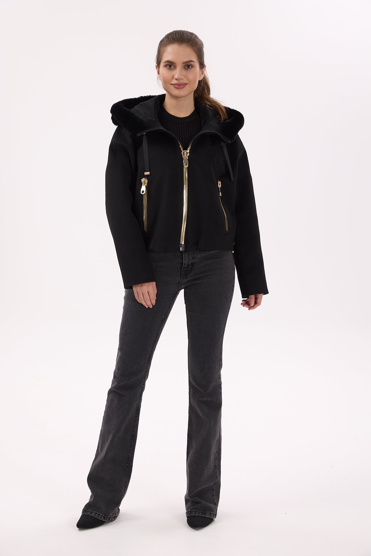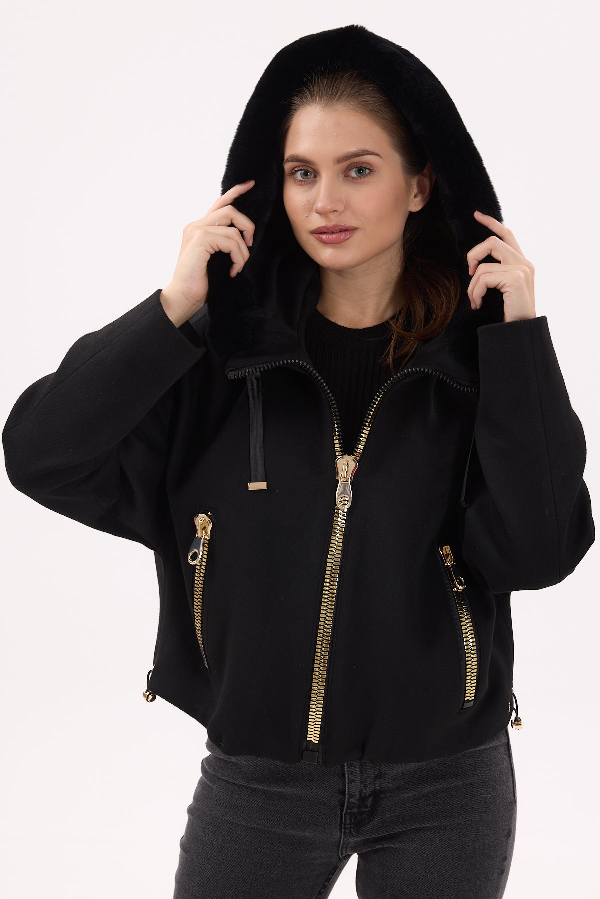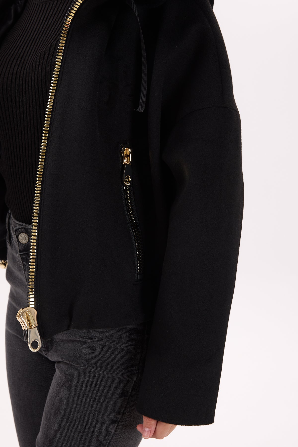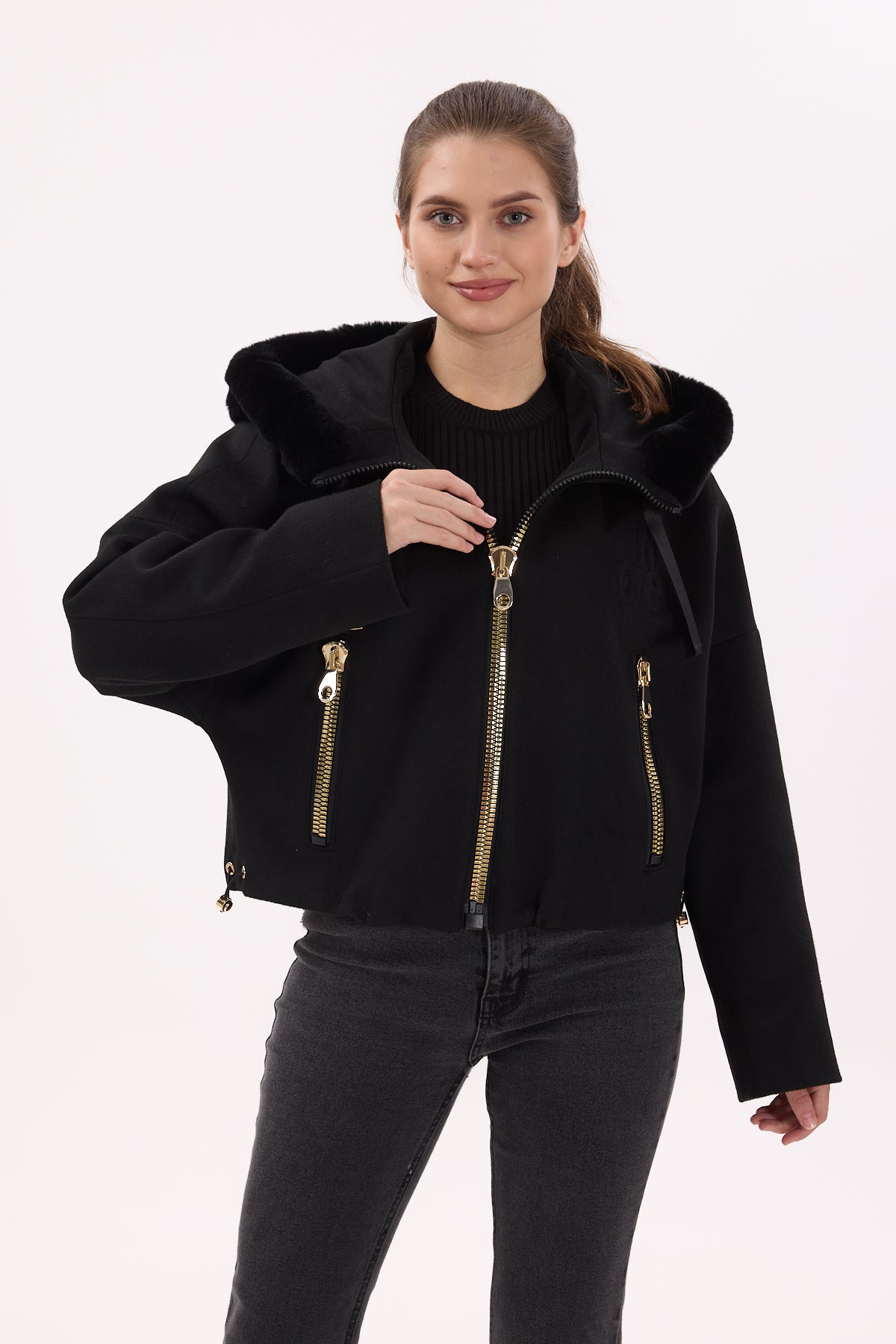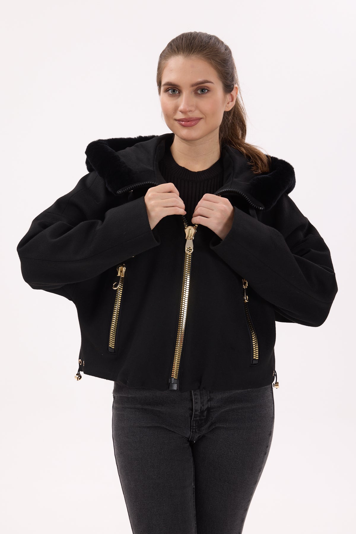 "Capri" Siyah Kısa Mont – Altın Fermuar Detaylı