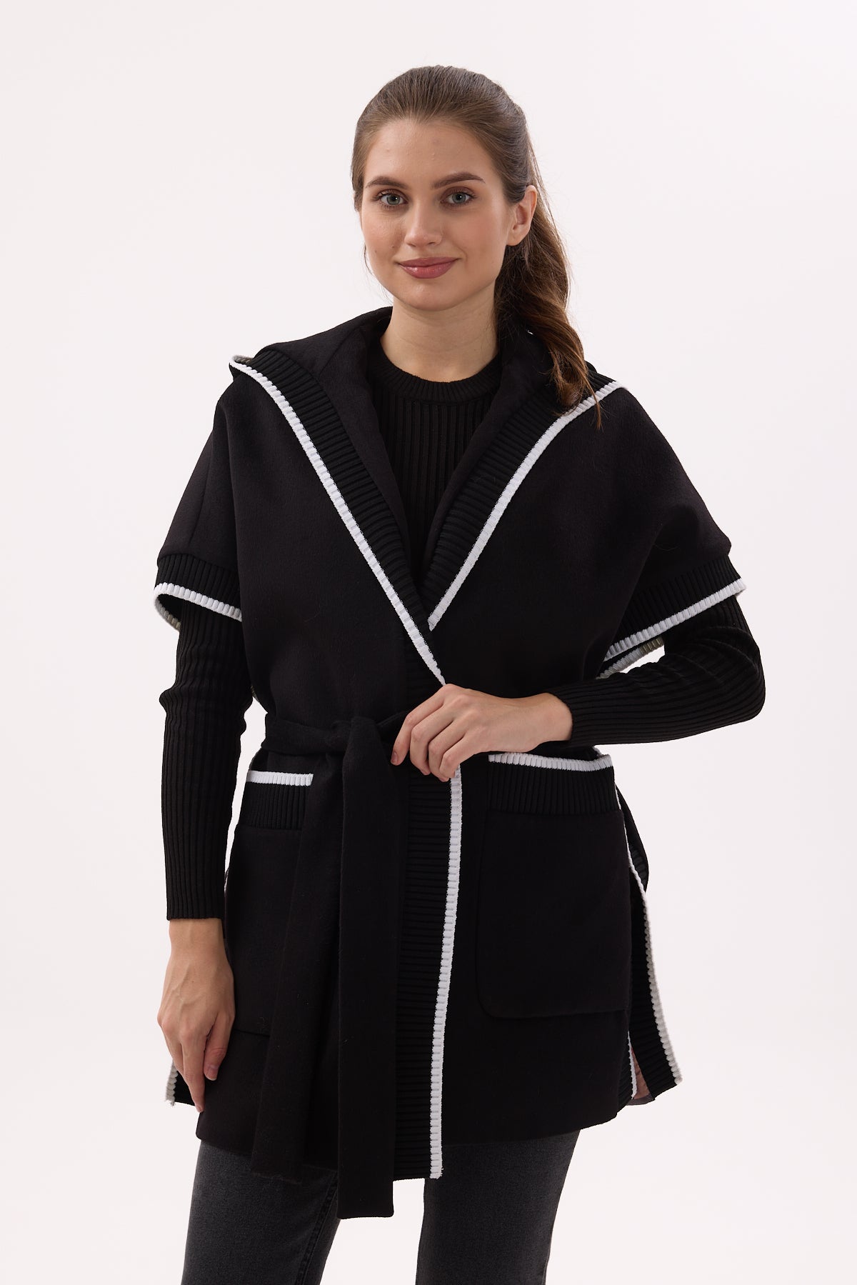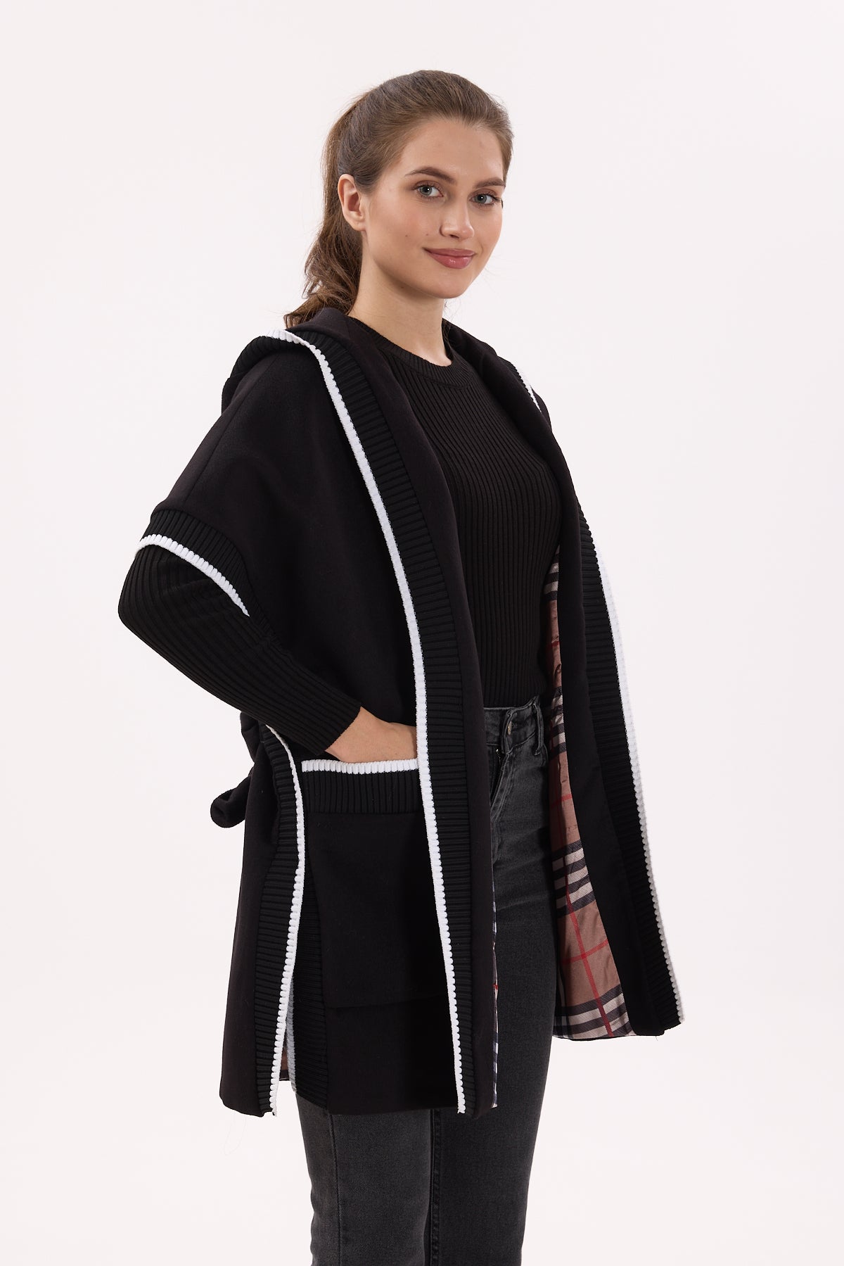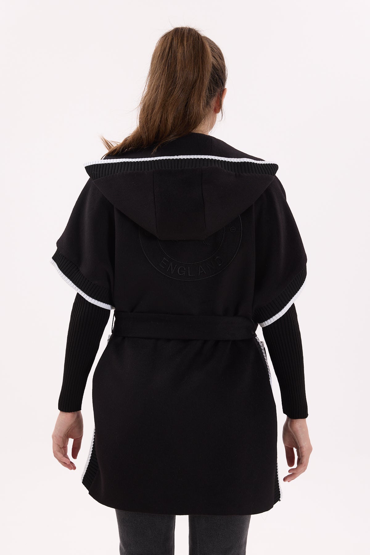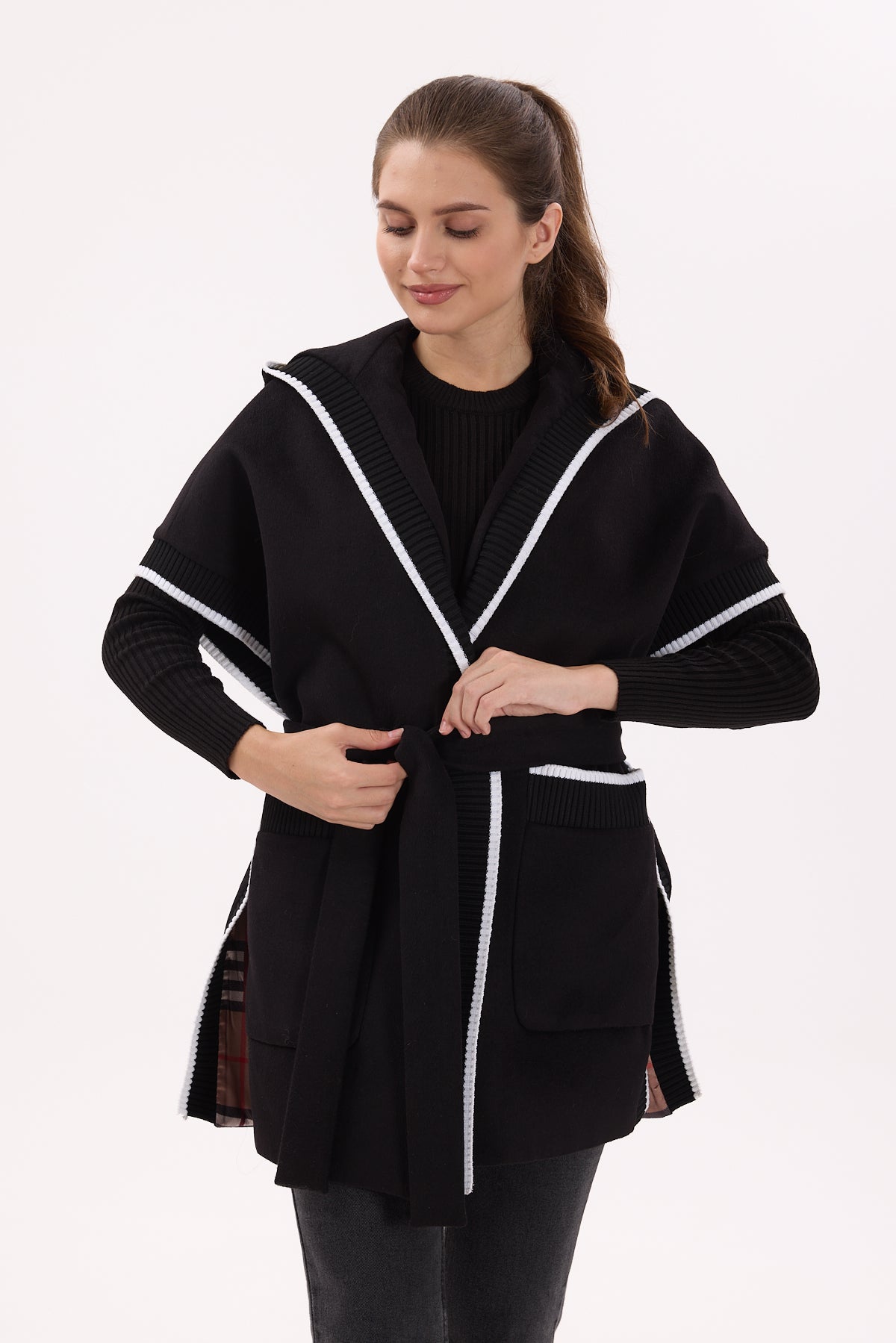 "Milano" Siyah Kapüşonlu Yelek – Beyaz Şerit Detaylı